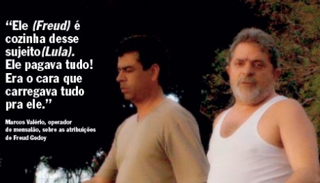 Freud Godoy gozava da intimidade de Lula. No primeiro mandato, ele chegou a ter uma sala dentro do Palácio do Planalto. Também transitava com desenvoltura pela máquina partidária. Sua empresa de segurança, a Caso, a mesma que recebeu dinheiro de Valério, virou uma espécie de sucursal do partido e aparece como destinatária de dinheiro da Bancoop, uma cooperativa habitacional dirigida por petistas, e de recursos da verba indenizatória à disposição dos parlamentares. Godoy se tornou um receptor privilegiado de dinheiro público e privado. Segundo Valério, ele era apenas um caixa intermediário: “Ele (Freud) é cozinha desse sujeito (Lula). Ele pagava tudo! Era o cara que carregava tudo pra ele”, disse o operador do mensalão, com a credencial de quem, como Godoy, tinha trânsito livre nos escaninhos do poder. Além de afirmar que o mensalão pagou despesas pessoais de Lula, Valério confirmou no depoimento à Procuradoria informações divulgadas por VEJA em setembro. Ele manteve a versão de que o ex-presidente avalizou os empréstimos fraudulentos contraídos pelo PT para subornar parlamentares e acusou Paulo Okamotto, diretor do Instituto Lula, de ameaçá-lo, inclusive de morte, caso implicasse o ex-presidente no esquema.