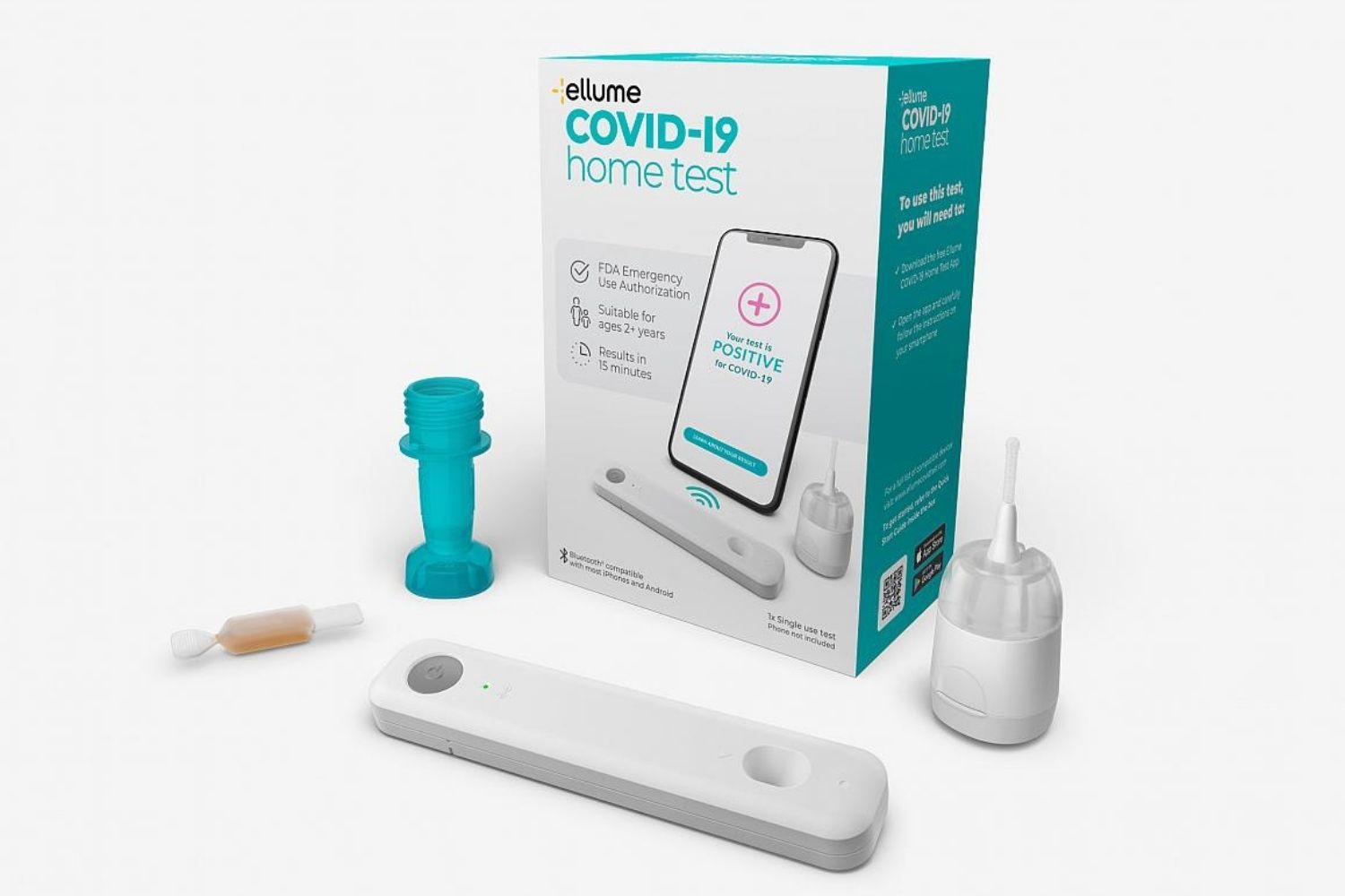 Funciona assim: o kit do teste inclui um cotonete especial, que permite aos usuários coletar uma amostra de dentro do nariz (como o swab, utilizado no PCR); um líquido que o usuários adicionam à amostra e um pequeno dispositivo de plástico que se parece com um teste de gravidez caseiro onde os usuários colocam a amostra embebida no líquido. Esse processo demora alguns minutos e os resultados são transmitidos sem fio para um aplicativo de smartphone em cerca de 15 minutos. O teste pode ser usado por adultos e crianças acima de 2 anos de idade.